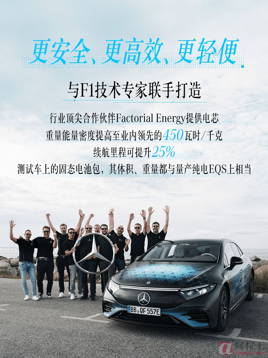 奔驰首席技术官马库斯・谢弗称此为"颠覆性突破"。测试车搭载的固态电池组重量能量密度达到业内领先的450瓦时/千克,较传统锂离子电池提升25%,而重量与体积与量产电池包相当。