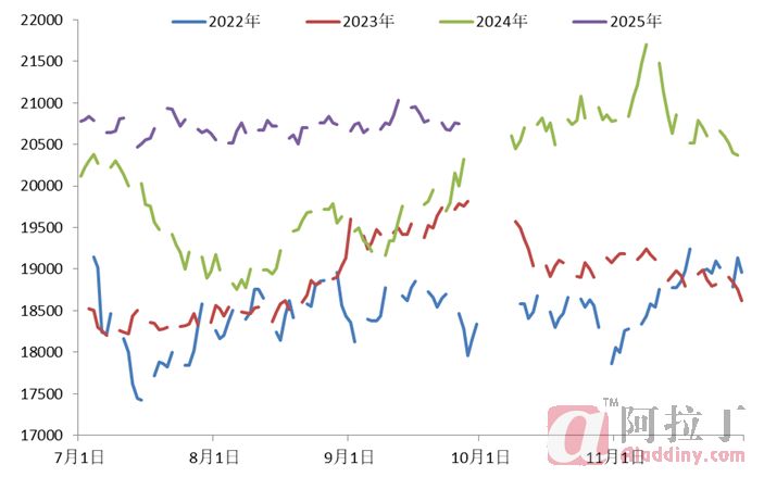 2025年9月,国内铝锭社会库存累计去库0.8万吨,基本类似于2023年9月累计去库0.1万吨的大致水平。与之相比,2024年同期铝锭累计去库13.1万吨,2022年同期去库3.7万吨。