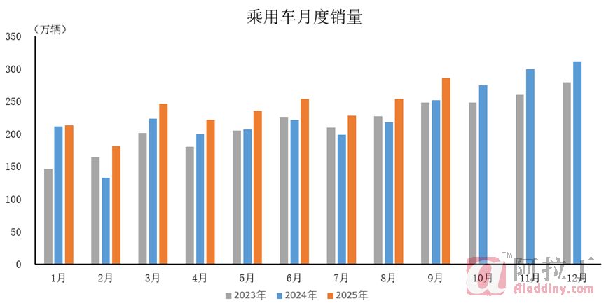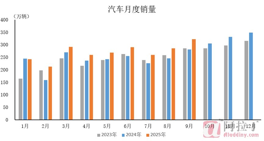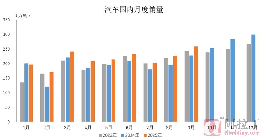 2025年9月,汽车国内销量257.4万辆,环比增长14.6%,同比增长13.4%。
