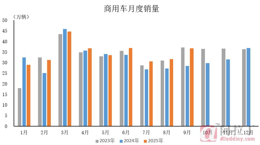 2025年9月,商用车产销分别完成37.6万辆和36.8万辆,环比分别增长19.3%和16.3%,同比分别增长27.7%和29.6%。