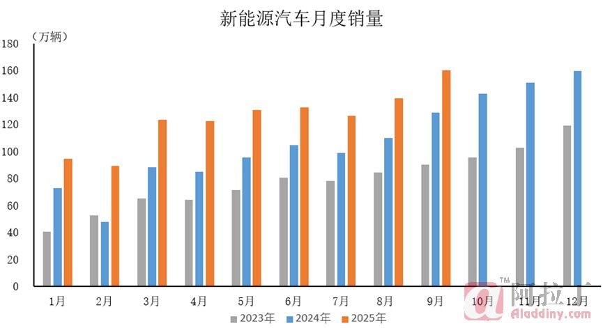 2025年9月,新能源汽车产销分别完成161.7万辆和160.4万辆,同比分别增长23.7%和24.6%。