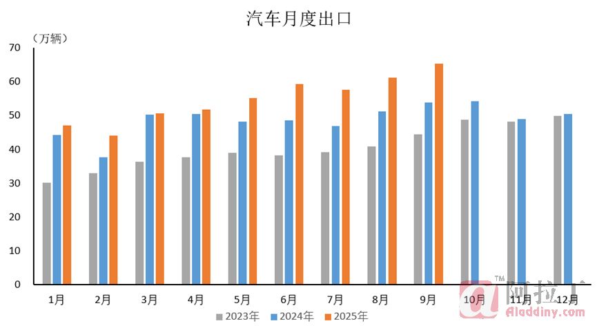 2025年9月,汽车出口65.2万辆,环比增长6.7%,同比增长21%。