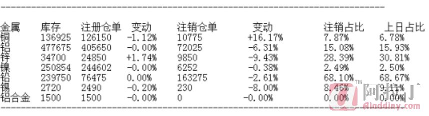 10月23日LME基本金属注销仓单