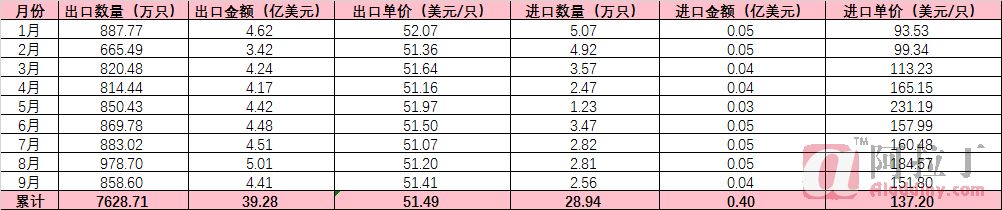 2025年1-9月份中国大陆铝合金车轮进出口数据汇总