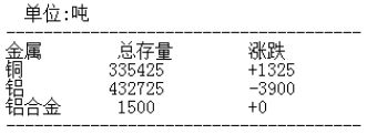 3月19日LME金属库存汇总