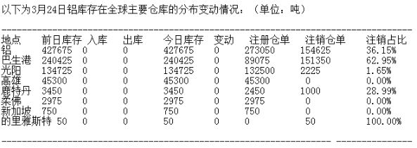 3月24日LME铝库存分布情况