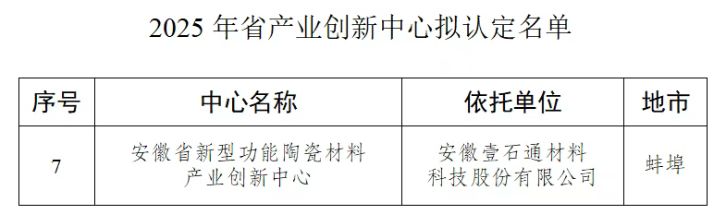 近日,安徽省发展改革委组织开展了2025年度省产业创新中心“揭榜挂帅”组建、验收工作,并对评审结果进行公示。安徽壹石通材料科技股份有限公司(以下简称“壹石通”)凭借其在新型陶瓷材料领域的技术创新能力和研发实力,牵头组建的“安徽省新型功能陶瓷材料产业创新中心”成功通过省级验收。