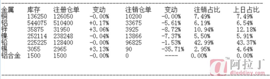 11月12日LME基本金属注销仓单