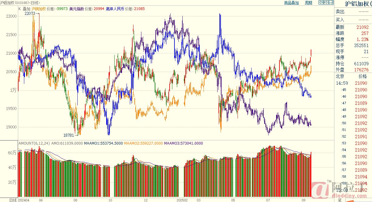 沪铝今日增仓4.17万手至61.1万手,收盘站上2.1万元大关,临近2025年3月高点,收涨1.23%;沪铜今日收涨1.24%,收盘站上8.1万元大关,刷新4月以来的最高水平,日内增仓2.76万手至52.25万手。从近期铜铝走势看,整体呈现出增仓上行行情,且双双强势突破前期箱体震荡区间。