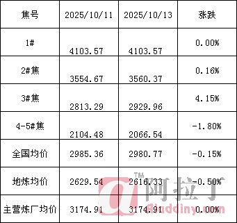 10月13日国内石油焦现货加权价格(单位:元/吨)