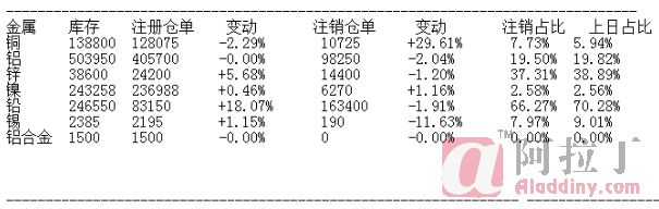 10月14日LME基本金属注销仓单