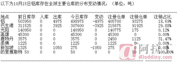 10月15日LME铝库存分布情况