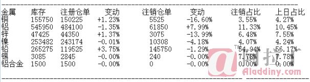 11月24日LME基本金属注销仓单