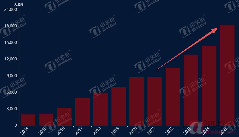 拉长2018 年至今周期来看,几内亚铝土矿出口增量、中国进口铝土矿消耗量与中国氧化铝运行产能变化高度联动。几内亚铝土矿出口量从 2018年5987万湿吨增长至 2025年18282.5万湿吨,累计增量12295.5万湿吨;同期中国进口铝土矿消耗量从6878万干吨增至17906.1万干吨,累计增量11028.1万干吨。