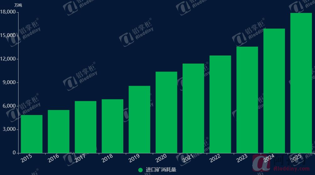 图3 中国进口铝土矿消耗量
