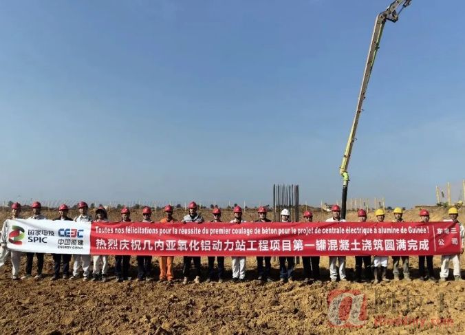 国家电投铝电公司几内亚氧化铝项目动力站主厂房首罐混凝土完成浇筑