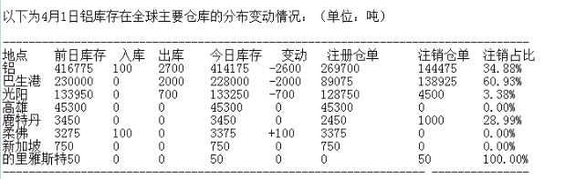 4月1日LME铝库存分布情况